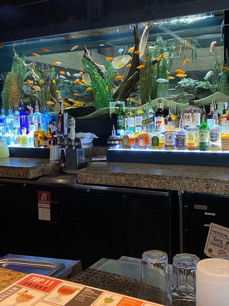 I then had dinner at a place called Cheddars Scratch Kitchen. The food wasn’t memorable but the fish tank behind the bar was:
